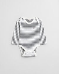 Ce body en 100 % coton bio est idéal pour votre bébé au quotidien. Il arbore un motif à rayures sur l'ensemble, un petit écusson brodé sur la poitrine et des boutons-pression permettant de l'enfiler et de l'enlever facilement.