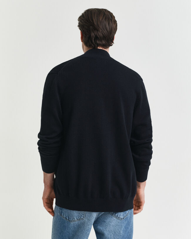 Ce cardigan zippé en coton d'épaisseur moyenne présente une coupe regular et un écusson Gant brodé au niveau de la poitrine.