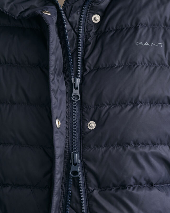Dotée d'un fini déperlant, cette doudoune matelassée ultra légère est réalisée en polyester recyclé et possède un garnissage composé de 90 % de duvet certifié et 10 % de plumes. Idéale pour jouer les superpositions, elle présente une coupe regular qui tombe à mi-cuisse. Ce modèle présente un col droit, un logo GANT ton sur ton imprimé sur la poitrine et des poches cavalières passepoilées, munies de boutons-pression laqués avec logo pour créer un look épuré.