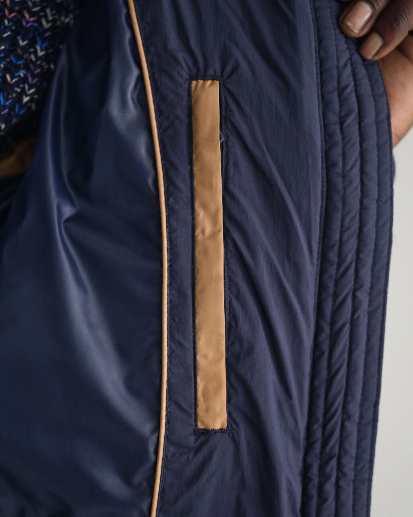 Toutes les couches qui composent ce produit, à savoir l'extérieur, la doublure et le garnissage, sont fabriquées dans un souci de durabilité. L’extérieur et la doublure sont conçus en matières synthétiques recyclées et le garnissage est fabriqué à partir de duvet et plumes certifiés.