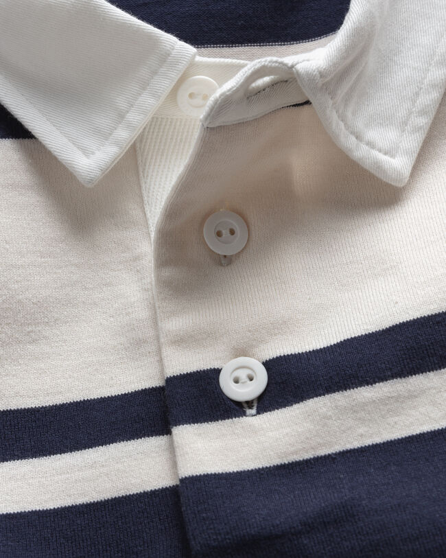 Issu de l'univers du rugby et véritable icône du style preppy depuis des décennies, le Heavy Rugger se réinvente à travers un motif éclatant composé de larges rayures. Ce polo de rugby se porte avec un pantalon chino ou un jean pour créer une tenue casual, mais vous pouvez aussi l'associer à un short ou un jogging pour revisiter le style athlétique à votre façon.