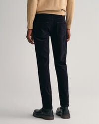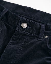 Réalisé en velours côtelé de coton mélangé, ce pantalon au look vintage présente une taille mi-haute et une coupe slim, des hanches jusqu'en bas des jambes. Il possède une braguette zippée, des boutons à tige siglés et un écusson GANT en cuir à l'arrière.