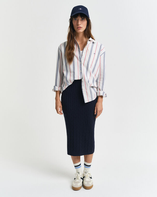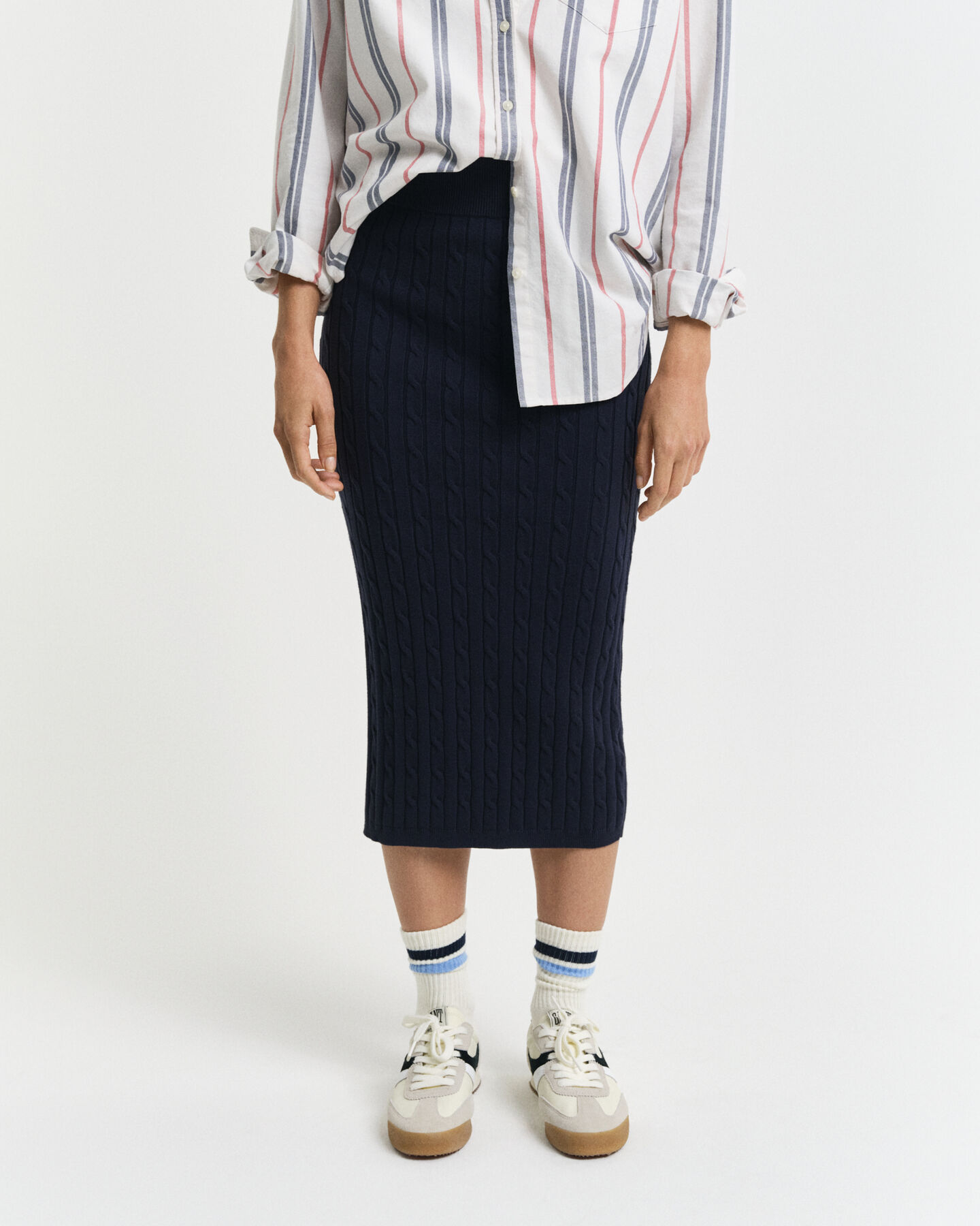 Dotée d'une coupe slim et d'une taille haute, cette jupe est réalisée en coton mélangé doux prenant la forme d'une maille torsadée. Ce modèle longueur midi arbore un tour de taille élastique en maille côtelée et un logo GANT Archive Shield brodé juste en dessous de la taille.