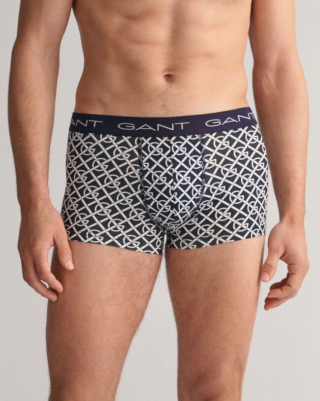Ce lot de trois caleçons est confectionné dans un jersey de coton rehaussé de stretch. Dotés de jambes courtes, d'une coupe slim et d'une taille classique, ces caleçons sont déclinés dans deux couleurs unies et un motif G saisonnier. Ils sont tous dotés d'un tour de taille élastique tricoté en jacquard et orné d'une succession de logos GANT.