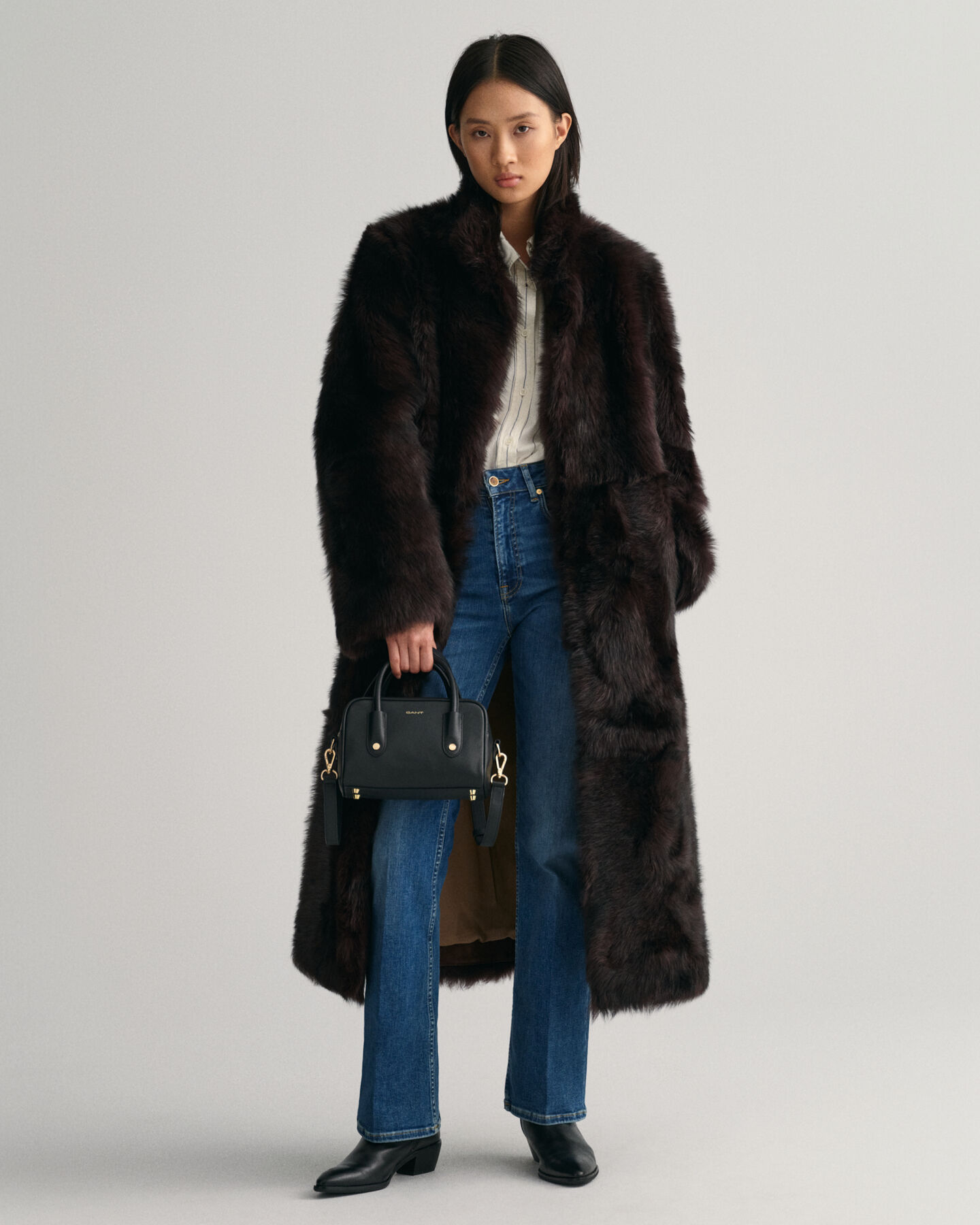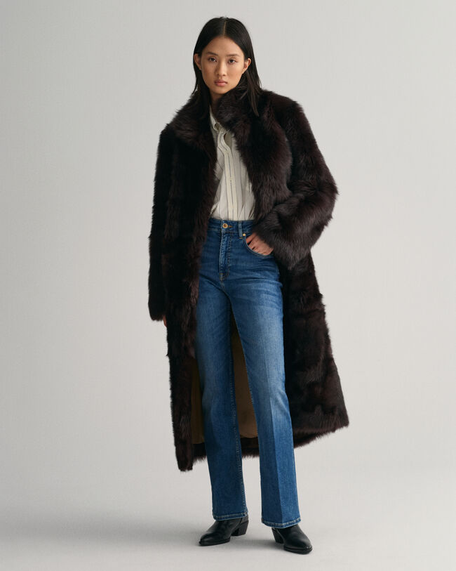 Manteau long en peau lainée
