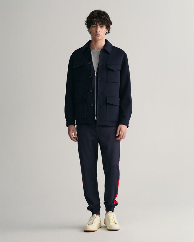 Sublimez vos moments de détente d'une touche luxueuse avec ce pantalon de jogging en jersey mélangé. Révélant un esprit athlétique qui rappelle les années 80, il présente une bande en polyester de couleur contrastante tissée sur le côté des jambes. Ce modèle arbore une coupe regular, deux poches avant, une poche arrière et des cordons de serrage à la taille permettant un ajustement personnalisé. Associez-le à la veste de survêtement assortie pour composer une tenue confortable et coordonnée.