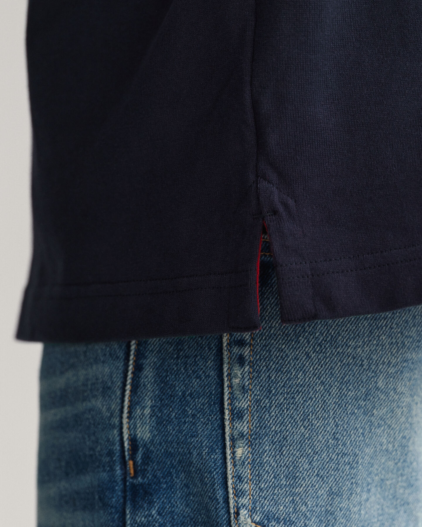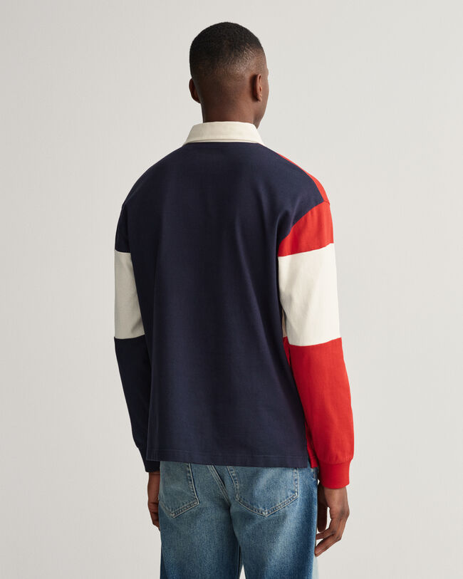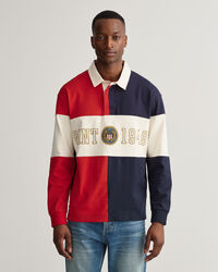 Issu de l'univers du rugby et véritable icône du style preppy depuis des décennies, ce polo de rugby emprunte certaines caractéristiques du polo Rugger classique et se pare d’un écusson Crest Shield saisonnier imprimé sur la poitrine. Ce modèle présente une coupe décontractée, un effet colour-block, un col en sergé, une patte de boutonnage à trois boutons et des poignets côtelés.
