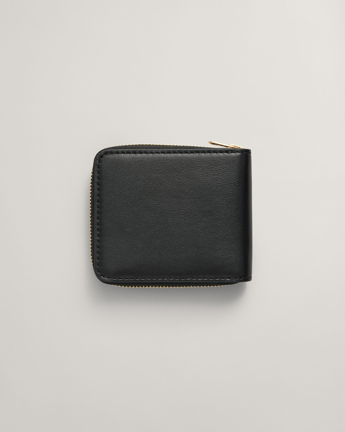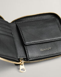 Cet élégant portefeuille est entièrement confectionné en cuir de veau de qualité supérieure. Il présente une fermeture à zip et une tirette en métal, ainsi que des compartiments intérieurs pour les cartes, les billets et la monnaie. Cet accessoire est agrémenté d'un logo GANT en creux métallisé, appliqué sur le cuir de la partie avant.