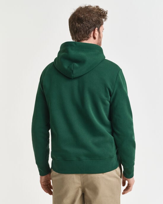 Confectionné en coton mélangé et doté d'une coupe regular, ce sweat à capuche décontracté deviendra vite l'un de vos modèles préférés. Il présente une capuche avec un cordon de serrage, une poche kangourou, des extrémités côtelées et un logo GANT athlétique imprimé sur la poitrine avec une texture rappelant le sergé.